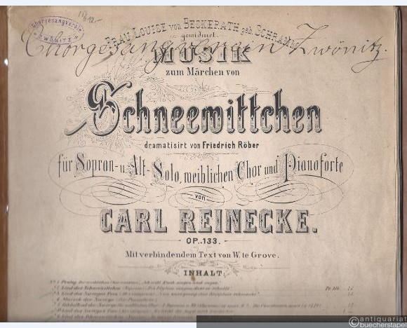 Musik zum Märchen von Schneewittchen, dramatisirt von Friedrich Röber, für Sopran- u. Alt-Solo, weiblichen Chor und Pianoforte, op. 133. Klavierauszug mit Text.
