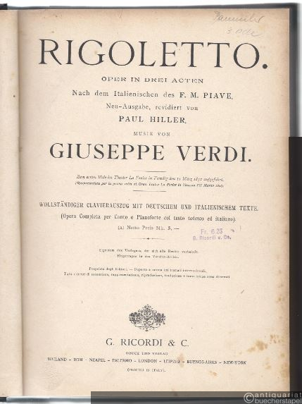Rigoletto. Oper in drei Acten. Wollständiger [!] Clavierauszug mit deutschem und italienischem Texte.