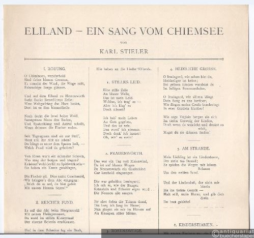 Eliland. Ein Sang vom Chiemsee. Gedicht von K. Stieler, [Op. 9] (= Edition Breitkopf, Nr. 2165). Ausgabe für mittlere Stimme.