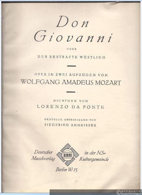 Don Giovanni oder Der bestrafte Wüstling [KV 527]. Oper in zwei Aufzügen. Klavierauszug.