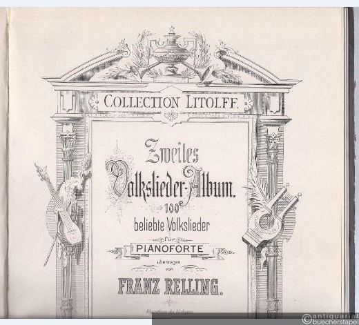 Volkslieder-Album. 100 beliebte Volkslieder für Pianoforte übertragen von Louis Rebbeling (= Collection Litolff, No. 443[a] / 443b). [2 Bände in 1].