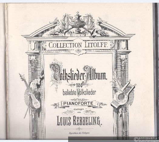 Volkslieder-Album. 100 beliebte Volkslieder für Pianoforte übertragen von Louis Rebbeling (= Collection Litolff, No. 443[a] / 443b). [2 Bände in 1].