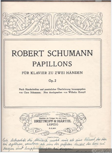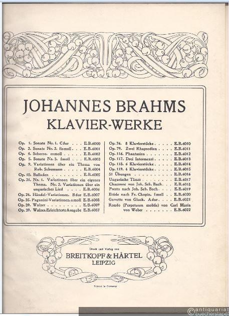Klavierstücke zu zwei Händen von Schubert, Schumann und Brahms (Breitkopf u. Peters).