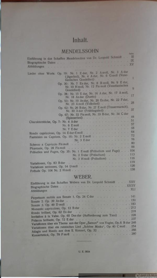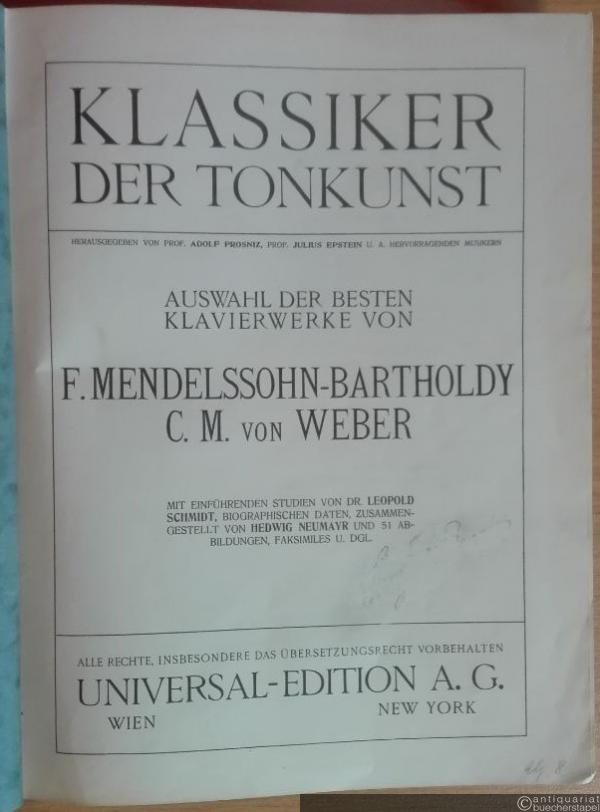Auswahl der besten Klavierwerke von F. Mendelssohn-Bartholdy und C. M. von Weber (= Klassiker der Tonkunst, Bd. V, hrsg. v. Adolf Prosnitz, Julius Epstein u. a.).