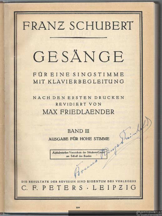Gesänge für eine Singstimme mit Klavierbegleitung, Band III (= Edition Peters, Nr. 790a). Ausgabe für hohe Stimme.