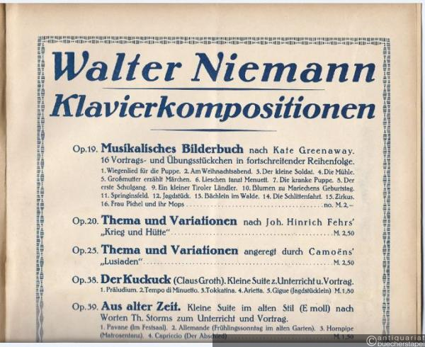 Von Gold drei Rosen. Kleine Variationen für Unterricht und Vortrag, op. 42. - Suite (B moll) nach Worten von J. P. Jacobsen, Nr. 1: Präludium. Der alte Springbrunnen, op. 43 no. 1.