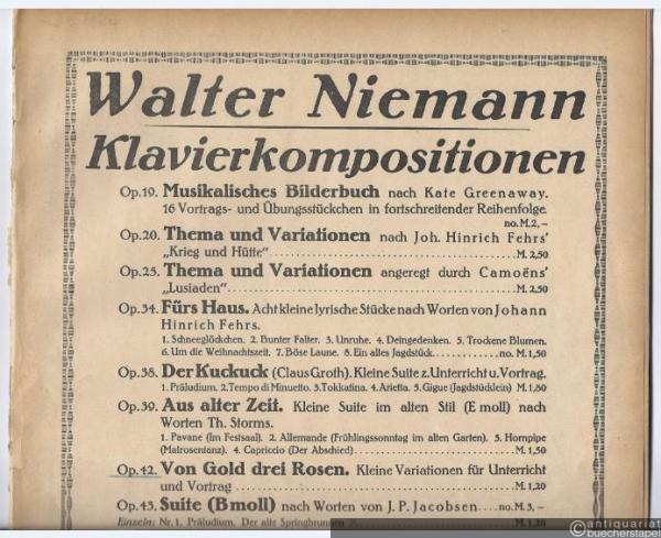 Von Gold drei Rosen. Kleine Variationen für Unterricht und Vortrag, op. 42. - Suite (B moll) nach Worten von J. P. Jacobsen, Nr. 1: Präludium. Der alte Springbrunnen, op. 43 no. 1.