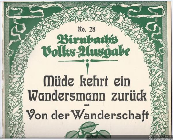 Müde kehrt ein Wandersmann zurück und Von der Wanderschaft (= Birnbach's Volks-Ausgabe No. 28). Gesang und Klavier.