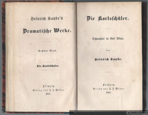 Goldgepr. HLn. Mit gedruckter Dedikation: Fräulein Louise Neumann, Mitgliede des K. K. Hofburgtheaters in Wien gewidmet. Mit Einleitung, Personen. Fraktur. Einbandeckel beschabt. Papier etwas gebräunt, gering braunfleckig. 1 Bl. mit kl. Einriss. Insgesamt altersgemäß gut erhalten.