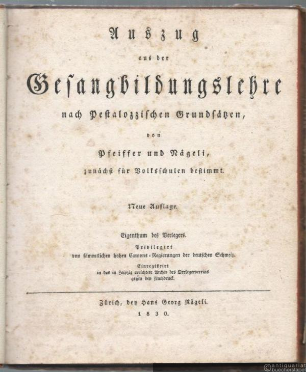 Auszug aus der Gesangbildungslehre nach Pestalozzischen Grundsätzen, von Pfeiffer und Nägeli, zunächst für Volksschulen bestimmt.