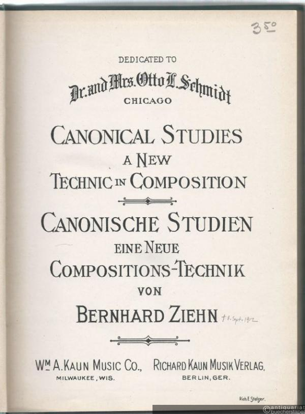 Canonical Studies a new Technic in Composition / Canonische Studien eine neue Compositions-Technik von Bernhard Ziehn.