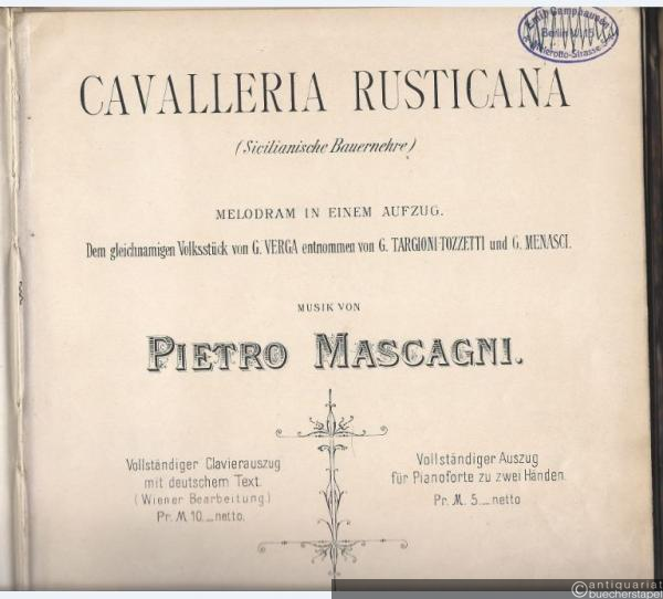 Cavalleria Rusticana (Sicilianische Bauernehre). Melodram in einem Aufzug. Vollständiger Auszug für Pianoforte zu zwei Händen.