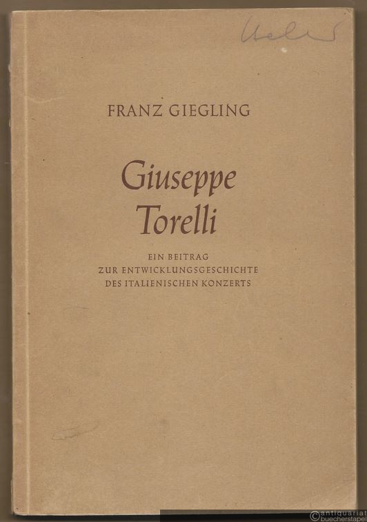 Giuseppe Torelli. Ein Beitrag zur Entwicklungsgeschichte des italienischen Konzerts.