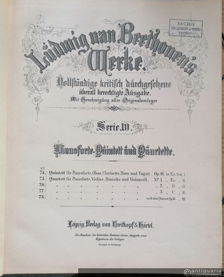 Ludwig van Beethoven´s Werke. Vollständige kritisch durchgesehene überall berechtigte Ausgabe. Mit Genehmigung aller Originalverleger. Serie 10. Pianoforte-Quintett und Quartette. Partitur und Stimmen.