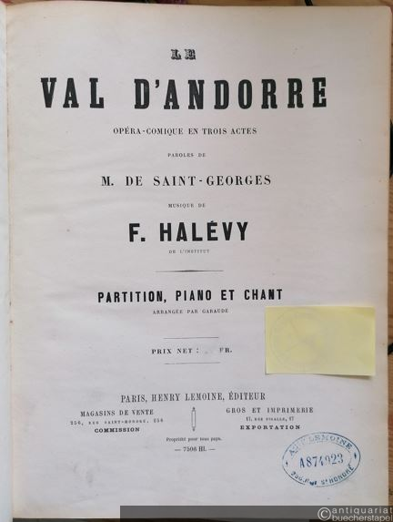 Le val d'Andorre. Opéra-comique en trois actes. Partition, Piano et chant, arrangé par Garaudé [Klavierauszug].