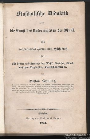 Musikalische Didaktik oder Die Kunst des Unterrichts in der Musik. Ein nothwendiges Hand- und Hülfsbuch für alle Lehrer und Lernende der Musik, Erzieher, Schulvorsteher, Organisten, Volksschullehrer etc. [Originalausgabe].