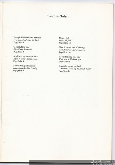 Canzonets, Ballets and Madrigals for 3, 4 and 5 voices / Canzonetti, Balletti und Madrigale für 3, 4 und 5 Stimmen. Edited by / Hrsg. v. Percy M. Young. Deutsche Nachdichtung von Günter Weise. Zweisprachige Ausgabe (Engl./Dt.). Mit "Herausgeberbericht" und "Zur Aufführung von Madrigalen") als Anhang. Ehem. Bibliotheksexpl. mit Signaturaufkleber, Stempeln und Signaturen auf dem Umschlag recto und verso. Sauberes Expl.
