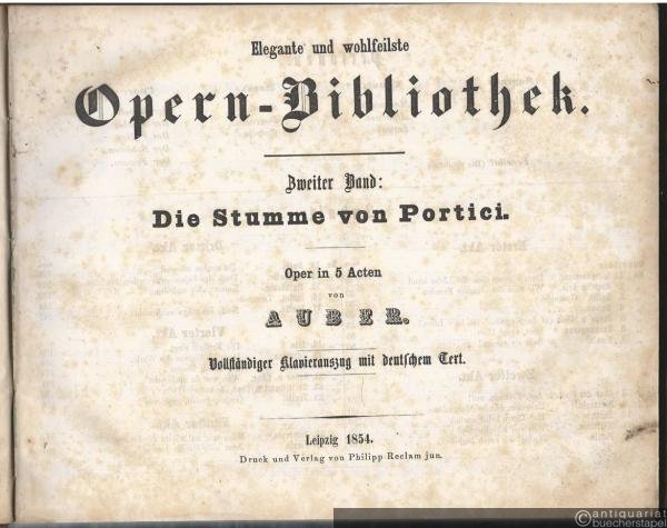 Die Stumme von Portici. Oper in 5 Acten (= Elegante und wohlfeilste Opern-Bibliothek, Zweiter Band). Vollständiger Clavierauszug mit deutschem Text.