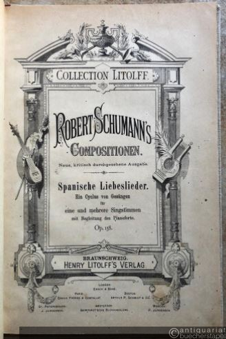 Spanische Liebeslieder. Ein Cyclus von Gesängen für eine und mehrere Singstimmen mit Begleitung des Pianoforte Op. 138 (= Robert Schumann's Compositionen. Collection Litolff, No. 1752).