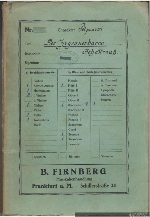 Fantasie aus der Operette: Der Zigeunerbaron (Le baron tzigane) (= Salonorchester No. 211). 12 Stimmen.