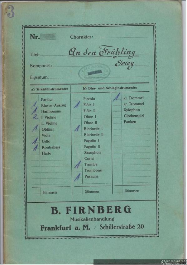 An den Frühling, Op. 43 No. 6 (= Salonorchester No. 408). 12 Stimmen.