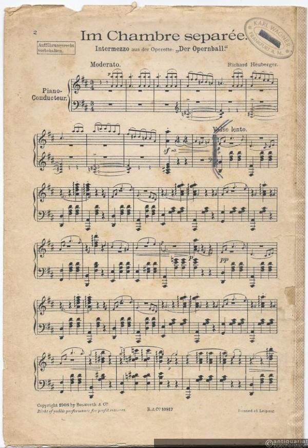 Im Chambre separée. Intermezzo aus der Operette: Der Opernball. Salonorchester. 12 Stimmen.