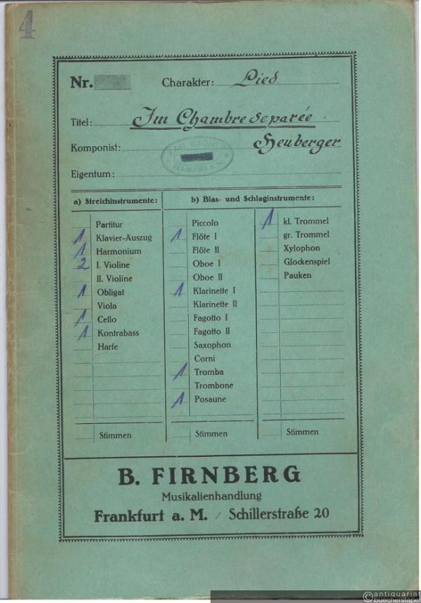 Im Chambre separée. Intermezzo aus der Operette: Der Opernball. Salonorchester. 12 Stimmen.