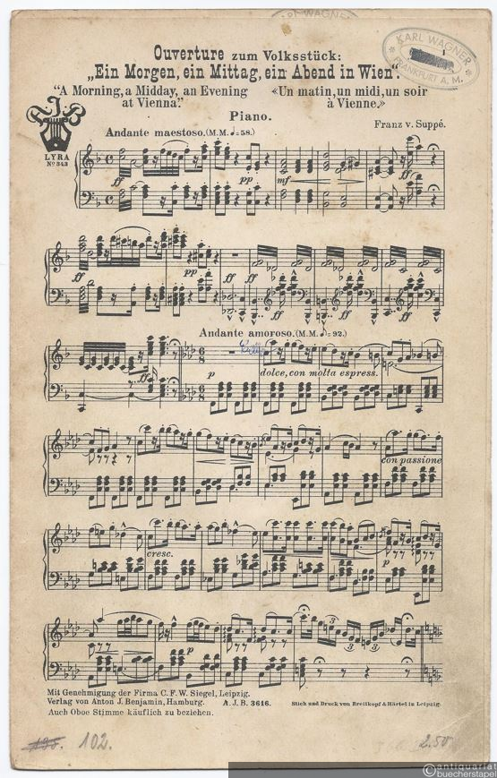 Ouverture zum Volksstück: "Ein Morgen, ein Mittag, ein Abend in Wien" (= Lyra No. 343). Salonorchester. 12 Stimmen.