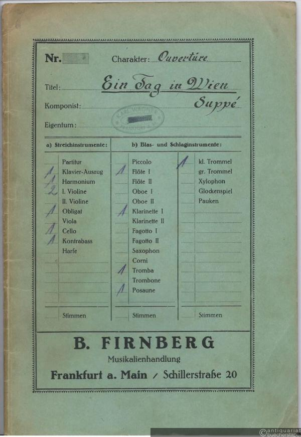 Ouverture zum Volksstück: "Ein Morgen, ein Mittag, ein Abend in Wien" (= Lyra No. 343). Salonorchester. 12 Stimmen.
