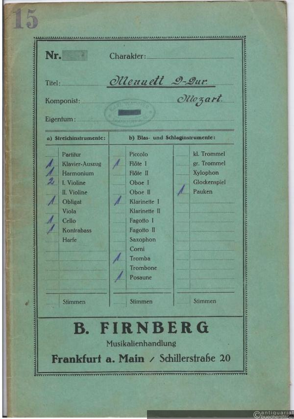 Menuett aus dem Divertimento in D-Dur [KV 334] (= Lyra No. 3148). Salonorchester. 12 Stimmen.