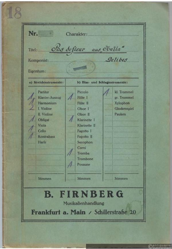 Pas des fleurs. Walzer-Intermezzo aus dem Ballett "Naila" (= Lyra No. 3247). Salonorchester. 12 Stimmen.