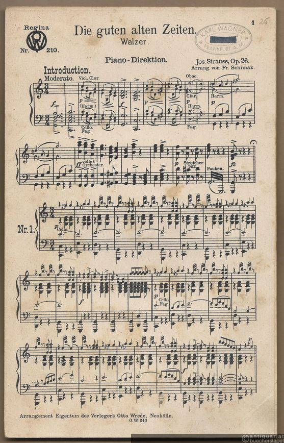 Die guten alten Zeiten, Op. 26. Walzer (= Regina Nr. 210). Salonorchester. 13 Stimmen.