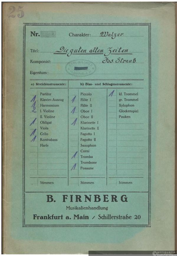 Die guten alten Zeiten, Op. 26. Walzer (= Regina Nr. 210). Salonorchester. 13 Stimmen.
