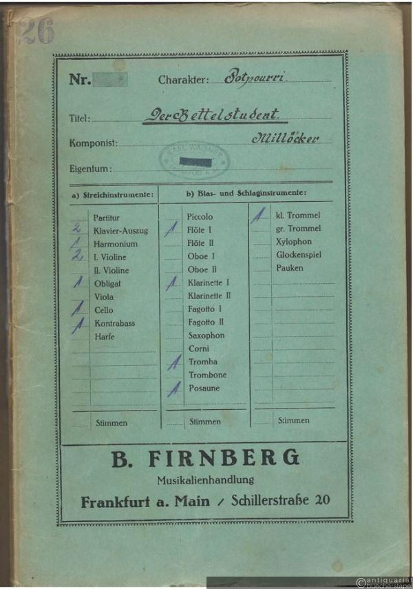 Potpourri aus der Operette "Der Bettelstudent" v. C. Millöcker (= Odeon No. 111 u. Salonorchester No. 344). 14 Stimmen.