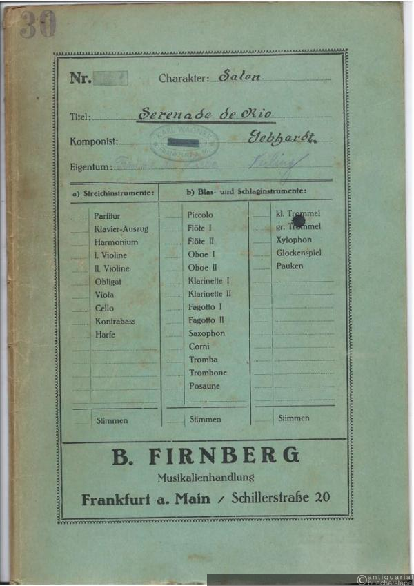 Serenade de Rio, Op. 1. Salonorchester. 13 Stimmen.