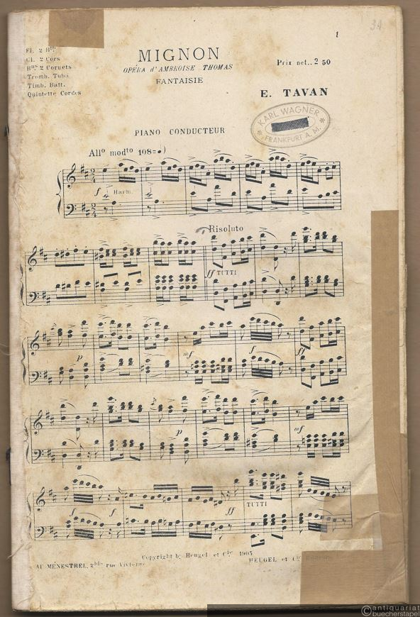 Fantaisie (Mignon, Opera d'Ambroise Thomas) (= L'opera symphonique. Fantaisies-mosaiques pouvant s'adapter a tous les orchestres sur les operas, ballets et operettes en vogue, 1). Salonorchester. 21 Stimmen.