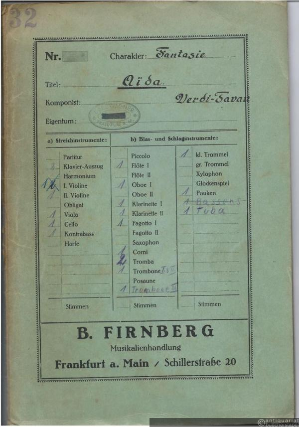 Aida, grand-opera de G. Verdi. Fantaisie. Salonorchester. 20 Stimmen.