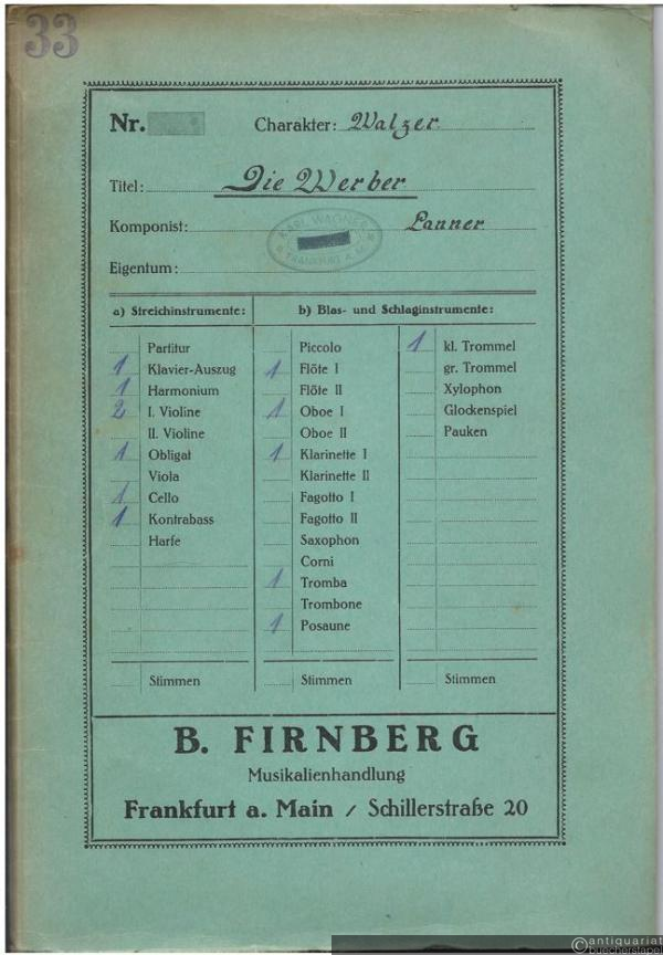 Die Werber, Op. 103. Walzer / The crimps. Waltz / Les enrolers. Valse (= Lyra No. 2861). Salonorchester. 13 Stimmen.