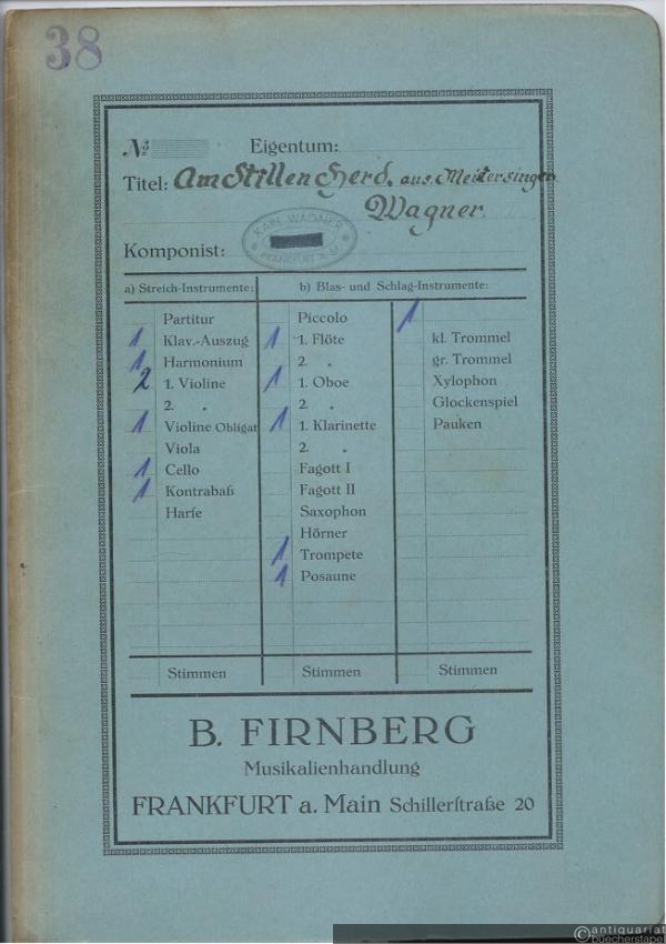 Am stillen Herd / Au cher foyer / By silent hearth aus der Oper: Die Meistersinger (= Lyra No. 3127). Salonorchester. 13 Stimmen.