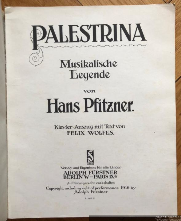 Palestrina. Musikalische Legende. Klavier-Auszug mit Text.