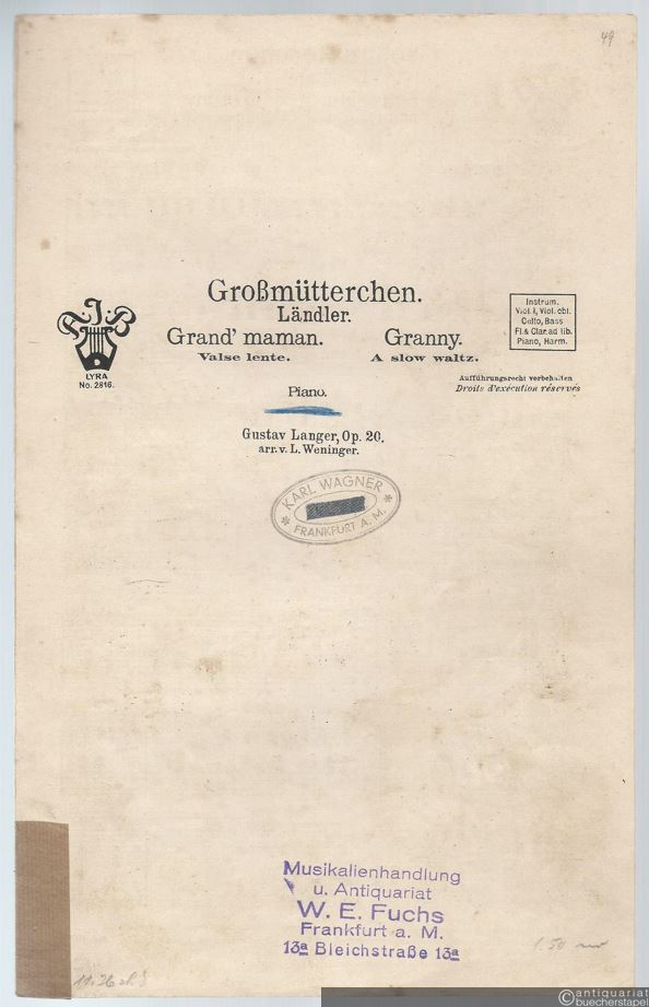 Großmütterchen, Op. 20. Ländler / Grand' maman. Valse lente / Granny. A slow waltz (= Lyra No. 2816). Salonorchester. 9 Stimmen.