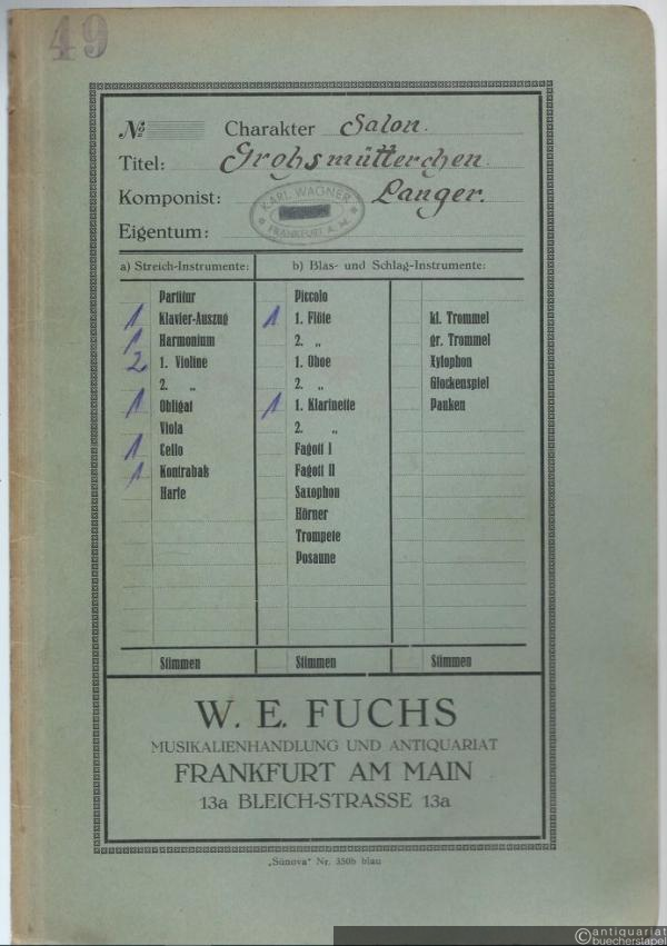 Großmütterchen, Op. 20. Ländler / Grand' maman. Valse lente / Granny. A slow waltz (= Lyra No. 2816). Salonorchester. 9 Stimmen.