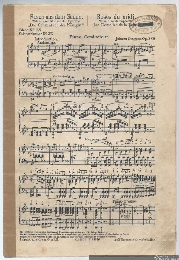 Rosen aus dem Süden, Op. 388. Walzer nach Motiven der Operette: Das Spitzentuch der Königin (= Odeon No. 158. Salonorchester No. 37). 12 Stimmen.