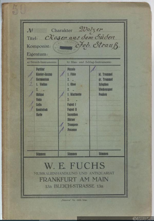 Rosen aus dem Süden, Op. 388. Walzer nach Motiven der Operette: Das Spitzentuch der Königin (= Odeon No. 158. Salonorchester No. 37). 12 Stimmen.