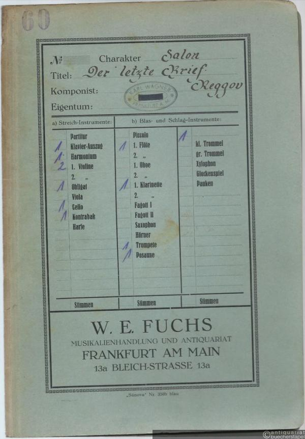 Der letzte Brief / La dernière lettre. Valse lente (= William Reggov's erprobte Musik-Schlager für Salon-Orchester). 12 Stimmen.