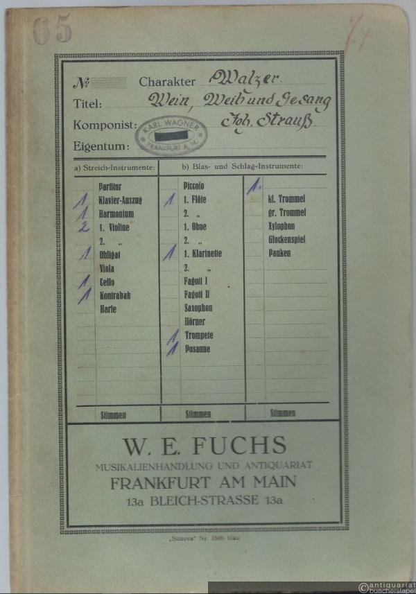 Wein, Weib und Gesang, Op. 333. Walzer / Aimer, boire chanter. Valse (= Odeon No. 28. Salonorchester No. 192). 12 Stimmen.