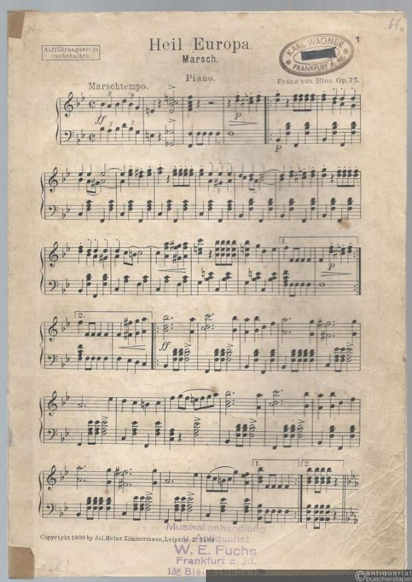 Heil Europa, Op. 75. Marsch. Salonorchester. 15 Stimmen.