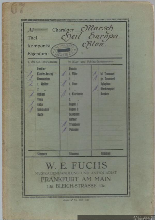 Heil Europa, Op. 75. Marsch. Salonorchester. 15 Stimmen.