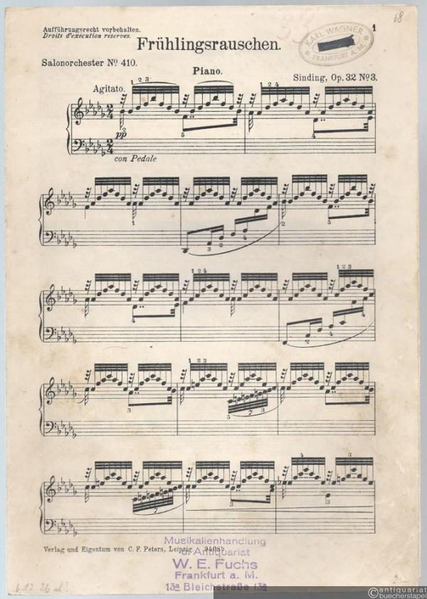 Frühlingsrauschen, Op. 32 No. 3 / Gazouillement du printemps / Rustle of Spring (= Salonorchester No. 410). 12 Stimmen.