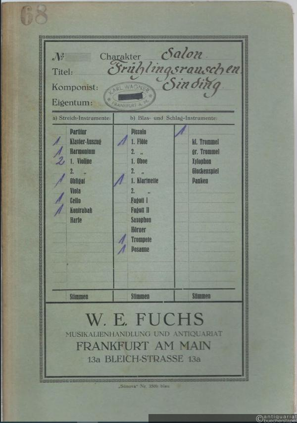 Frühlingsrauschen, Op. 32 No. 3 / Gazouillement du printemps / Rustle of Spring (= Salonorchester No. 410). 12 Stimmen.